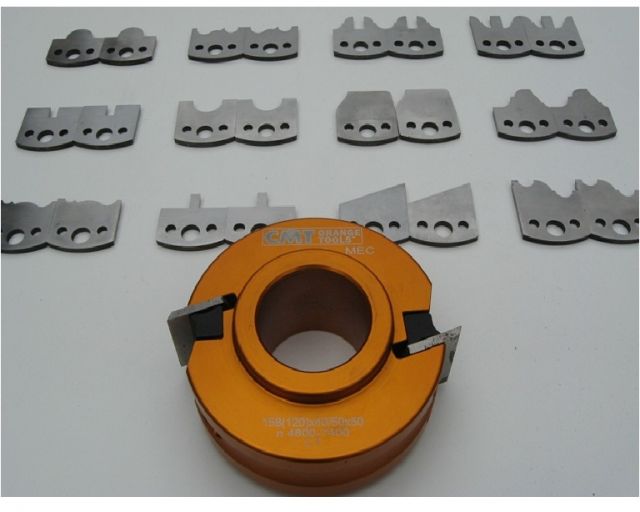 Cabezal de aluminio porta cuchillas,con 13 juegos de molduras varias en HSS (acero rapido)